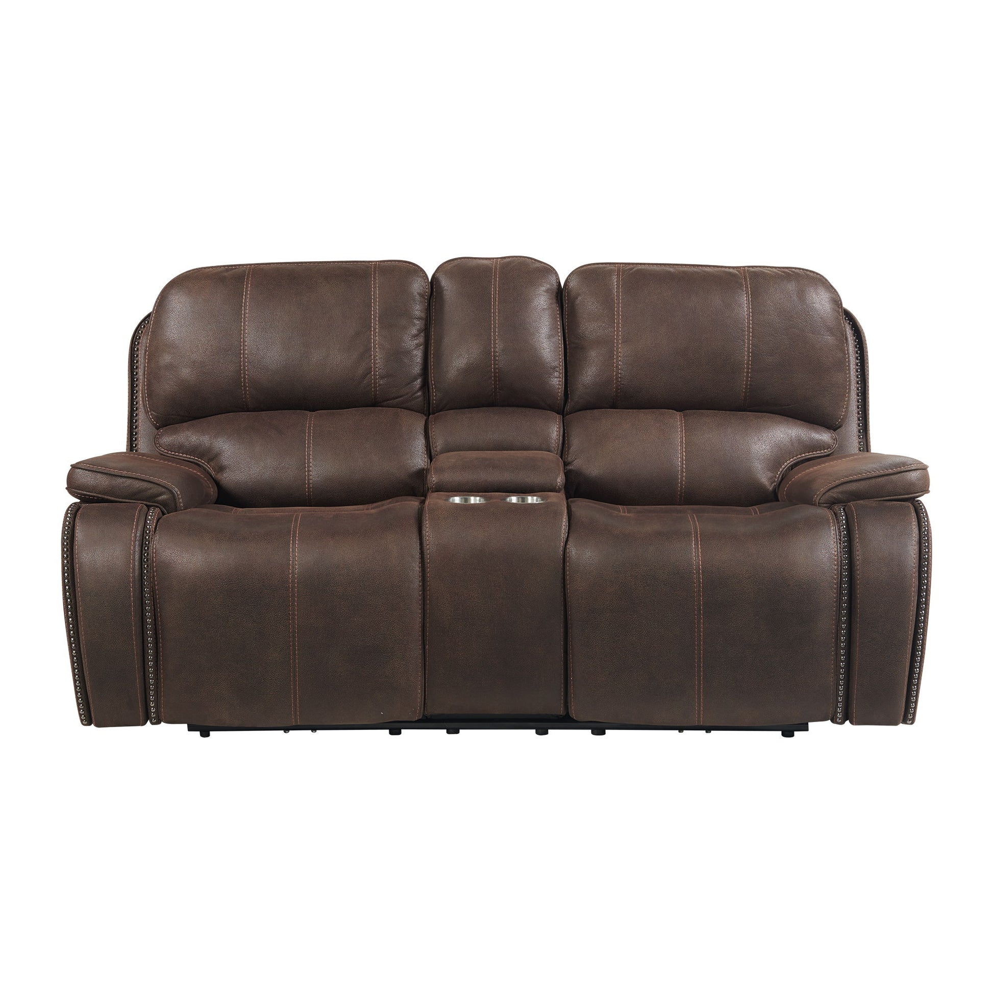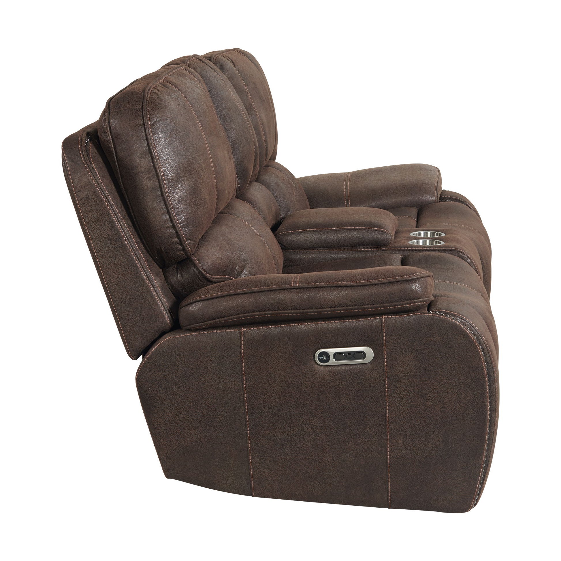 Atlantis - Power Motion Loveseat With Power Headrest & Console - Heritage Coffee
