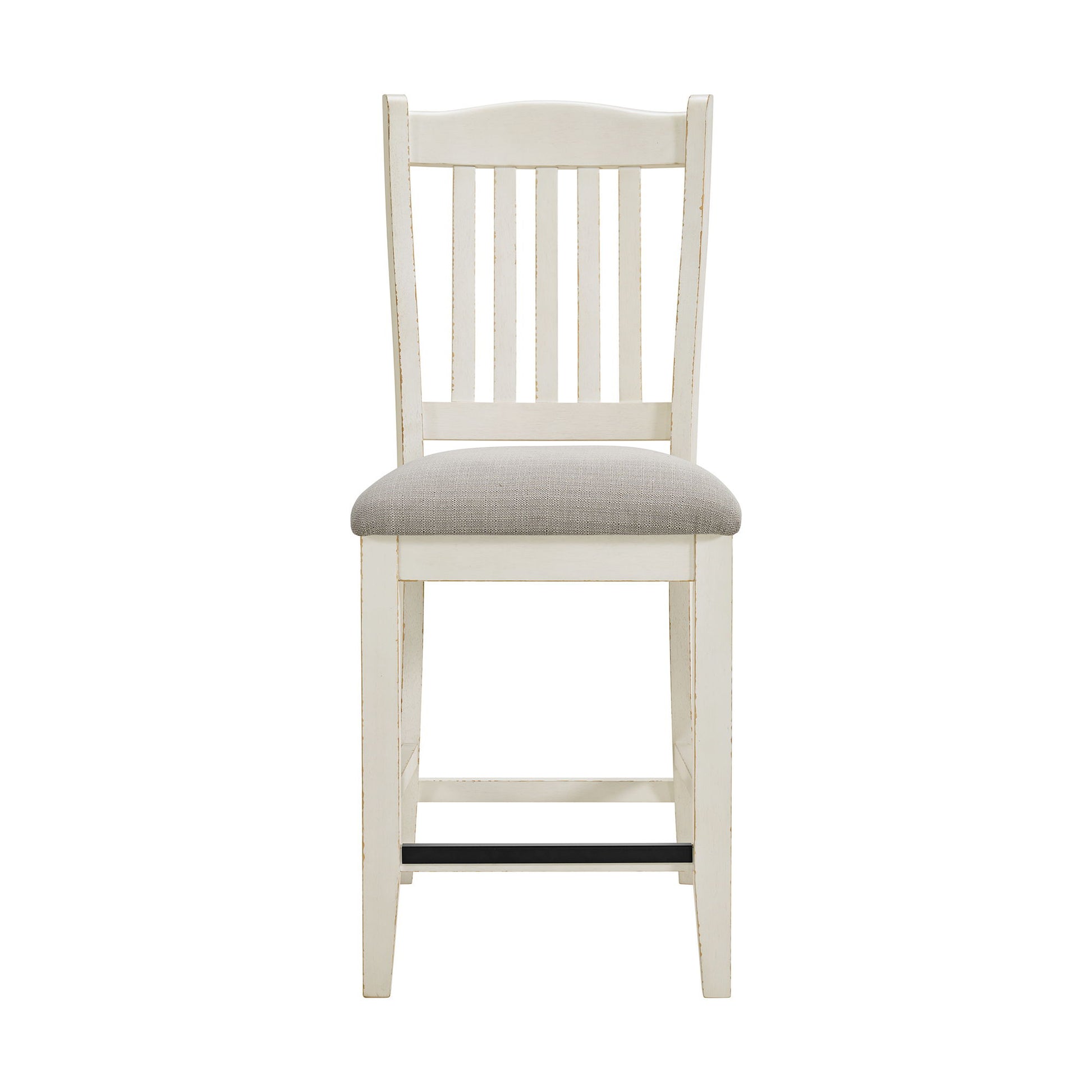 Enhance your dining experience with the Bellevue Counter Side Chair. Included are two stylish chairs constructed of rubberwood with distressed edges for a rustic look. The slat back design and foam cushion upholstered seats provide both comfort and style to your dining area. With stretchers for added stability, these counter chairs are not only beautiful but also durable. Bring a touch of farmhouse charm to your home dining experience with a Bellevue collection piece today!