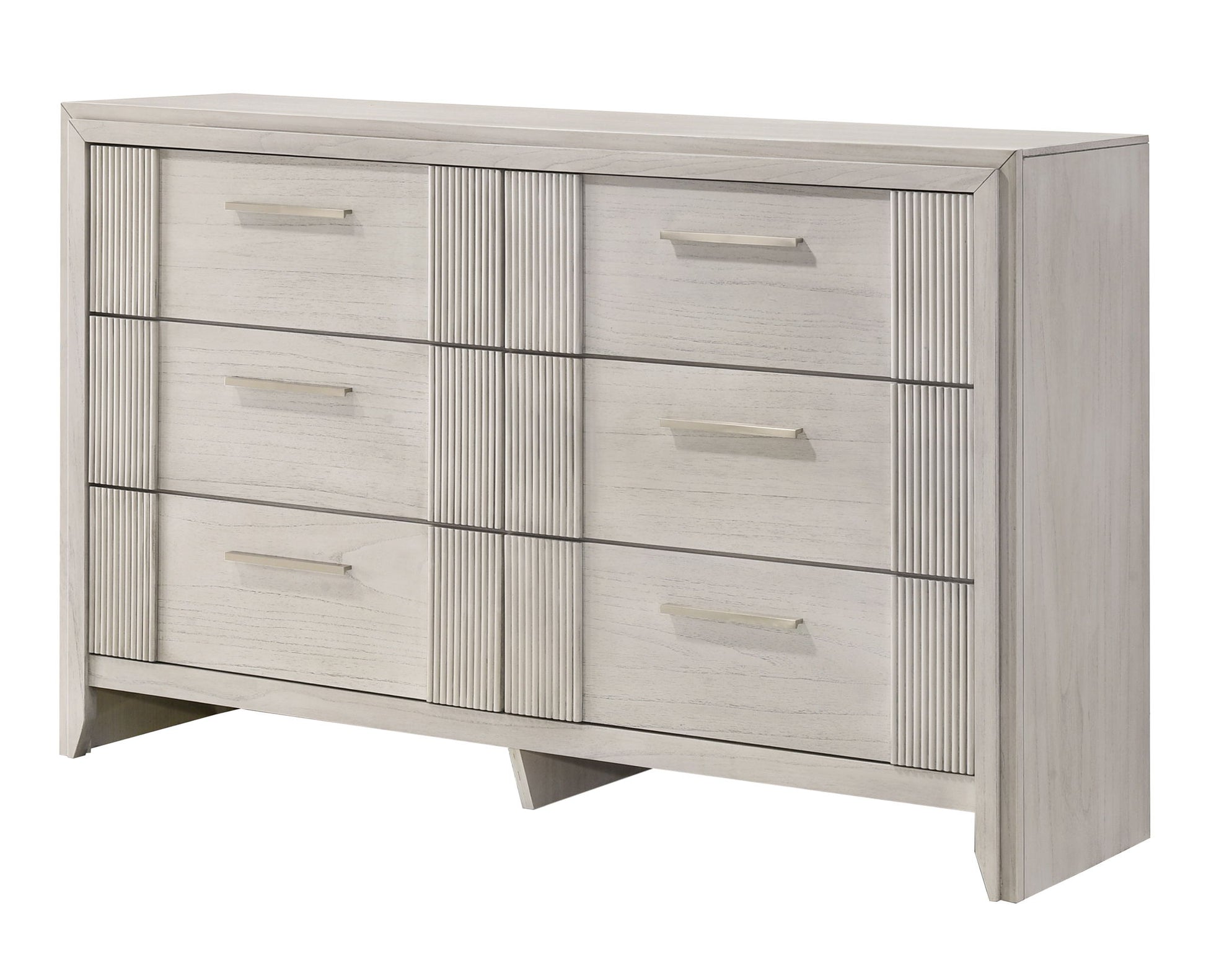 Create a warm and inviting retreat with this beautifully crafted bedroom ensemble, where timeless design meets modern functionality. Featuring a rich wood finish and sleek, linear details, this collection strikes the perfect balance between rustic charm and contemporary sophistication. The centerpiece showcases a plush, upholstered headboard framed in deep tones, offering a cozy and elegant touch. Matching storage pieces provide generous space to organize your essentials, all accented with polished hardware for a refined look. Perfect for those seeking style and practicality, this group transforms your space into a harmonious haven.