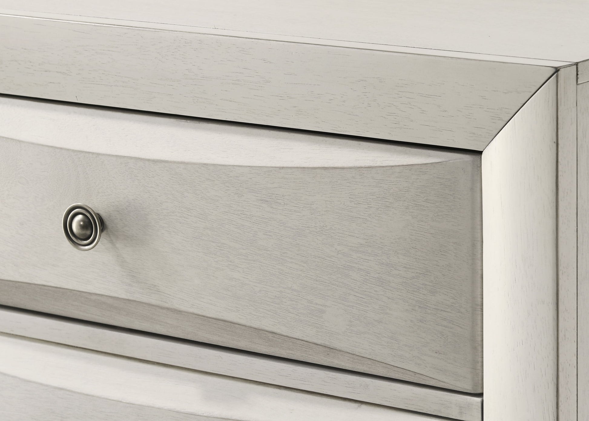Optimize your bedroom with this innovative and stylish furniture collection, designed to blend modern functionality with sleek aesthetics. The centerpiece boasts a sophisticated headboard featuring built-in shelving and storage compartments, perfect for showcasing decor or keeping essentials within reach. The integrated storage drawers on the bed frame add a practical touch, maximizing organization without compromising style. Complementary pieces offer a streamlined design, curved drawer fronts, and ample storage to keep your space tidy and elegant. Finished in a chic, neutral white, this group transforms your bedroom into a harmonious retreat with smart design and contemporary charm.