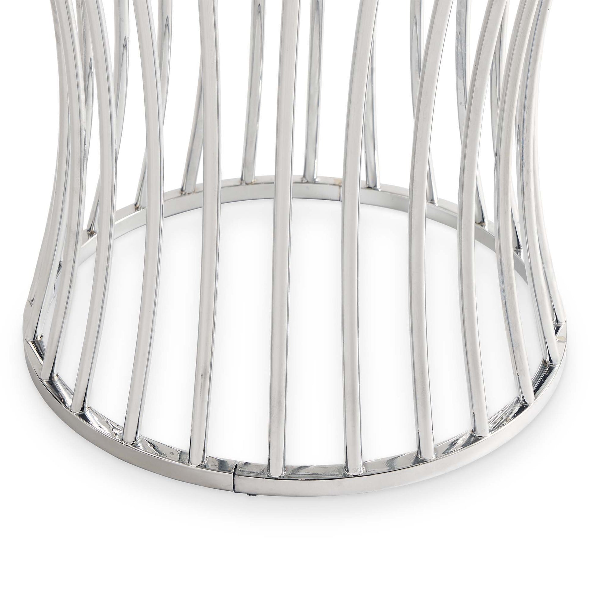 The Emma Round End Table is the accent piece your living space has been missing! This end table features a modern glam design, instantly adding a dash of luxury to your home. The glass table top pairs perfectly with the chrome finish, making this end table easily transitional with any space. The intricate work on the table base adds an element of drama and flair. This living room staple is perfect for small space living thanks to its tall and narrow design. Add this end table to your living space today for an ultra glam look!