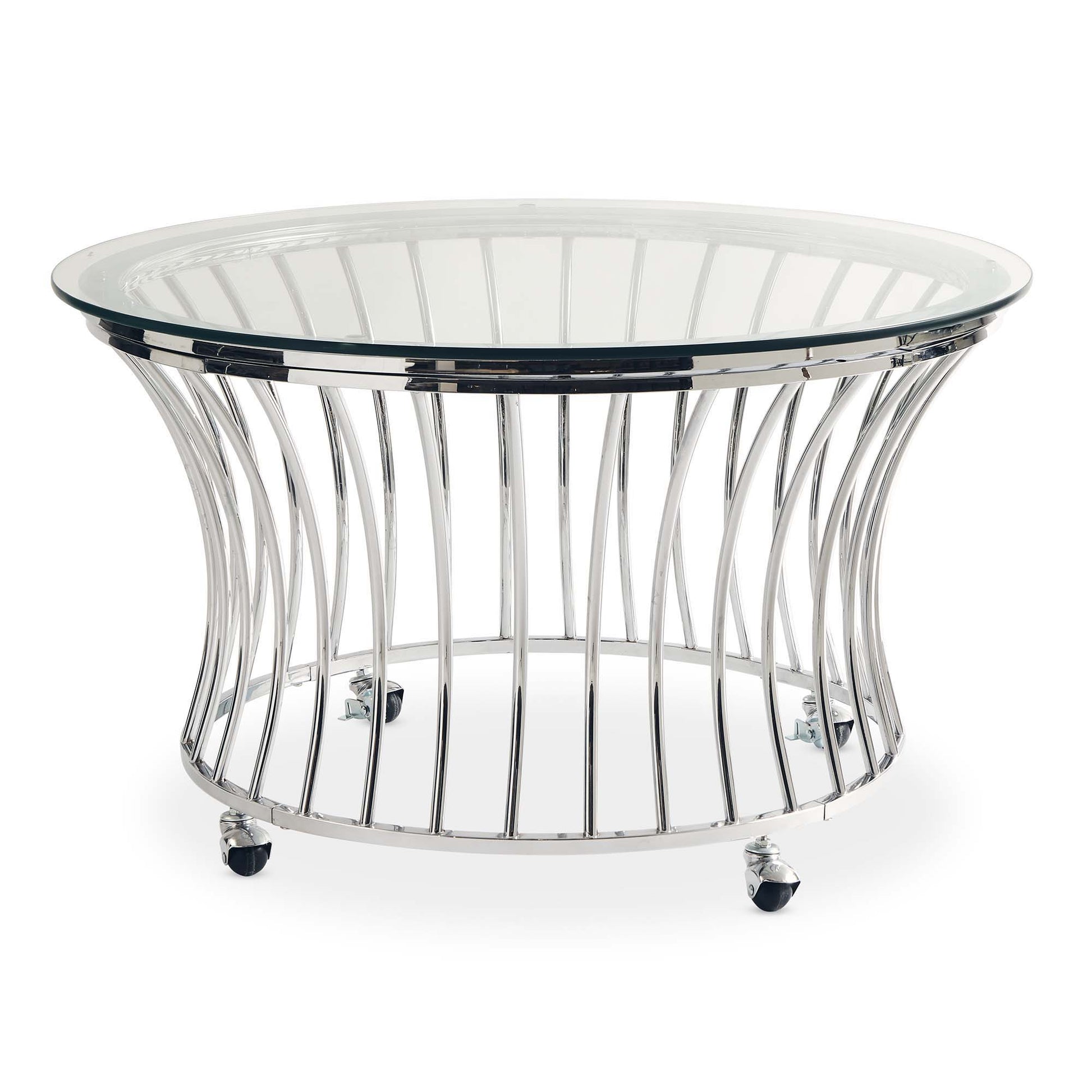 The Emma Occasional Table Set is the ideal set for your living space! This features a modern glam design, instantly adding a dash of luxury to your home. The coffee table comes with removable casters, allowing you to move around the table with ease and to rearrange your space if needed. The glass table tops pair perfectly with the chrome finish, making this table easily transitional with any space. The intricate work on the bases adds an element of drama and flair. Add this to your living space today for an ultra glam look!
