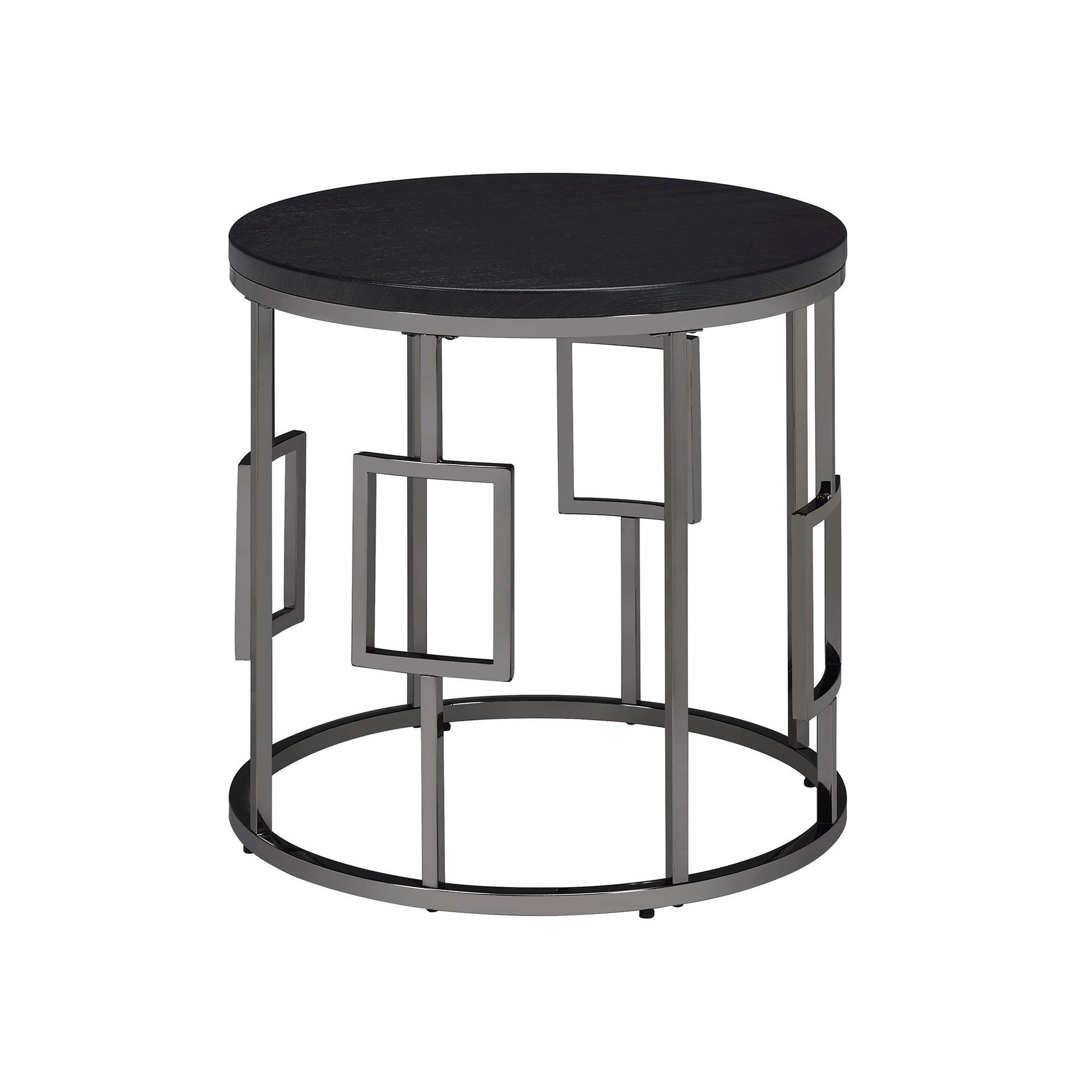 An occasional piece ideal for adding dark, sophisticated tones to your living space. The Ester End table is constructed of a black wooden tabletop and metal nickel base, which features clean lines and cutouts that can be appreciated from any angle of the room. Round table design can be ideal for small space living, but this standout piece can seamlessly transition into any place and keep it stylish year after year.