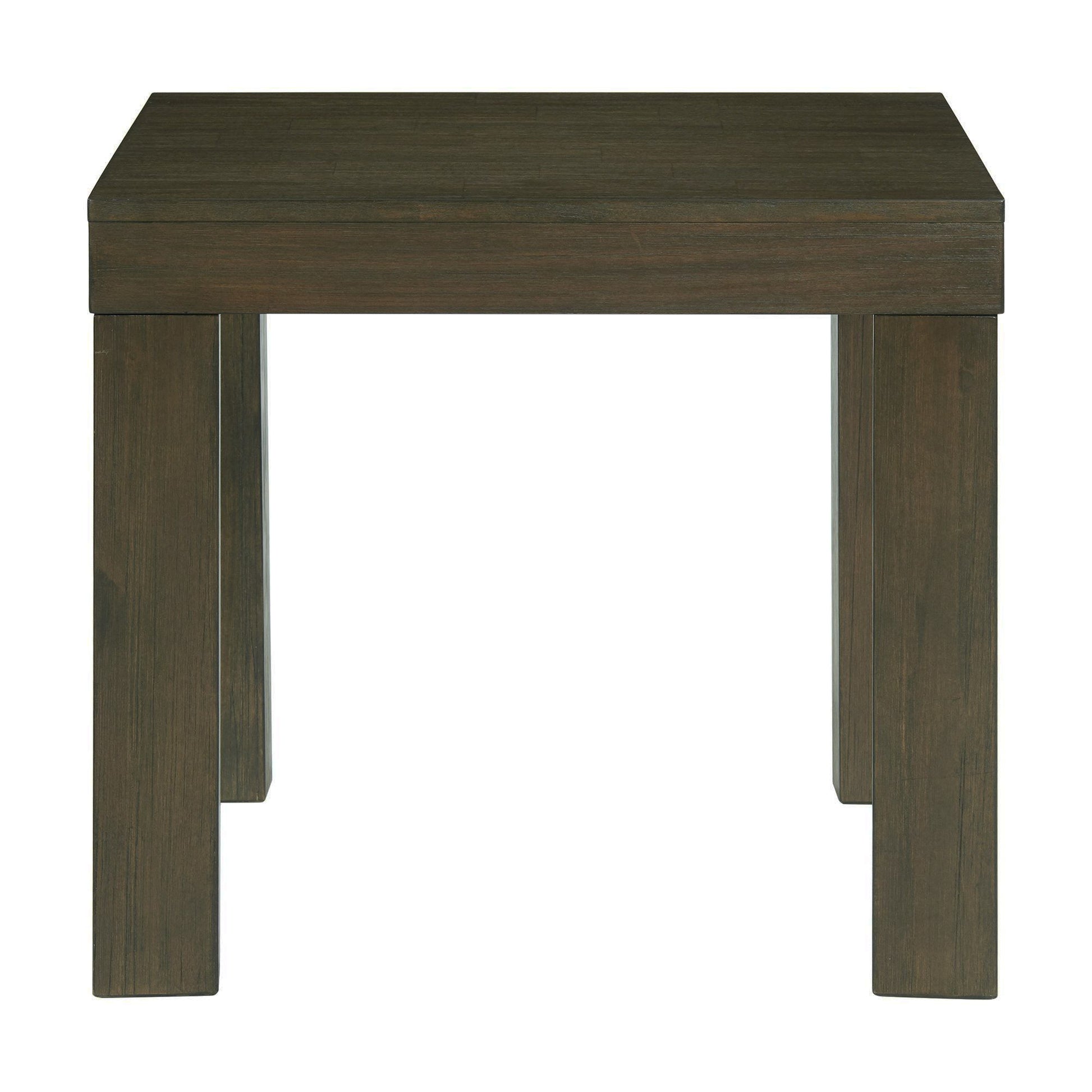 The Grady End Table features thick legs that instantly give this transitional piece a stylish update. Another cool feature about this living room staple is its wire brush finish, which adds texture to the overall finish. Also enjoy the benefit of a power plug with two additional USB ports a convenient way to keep your devices charged and close by. The dark walnut color easily pairs with any existing decor, and the sleek clean lines will make this a staple in your home for many years to come.