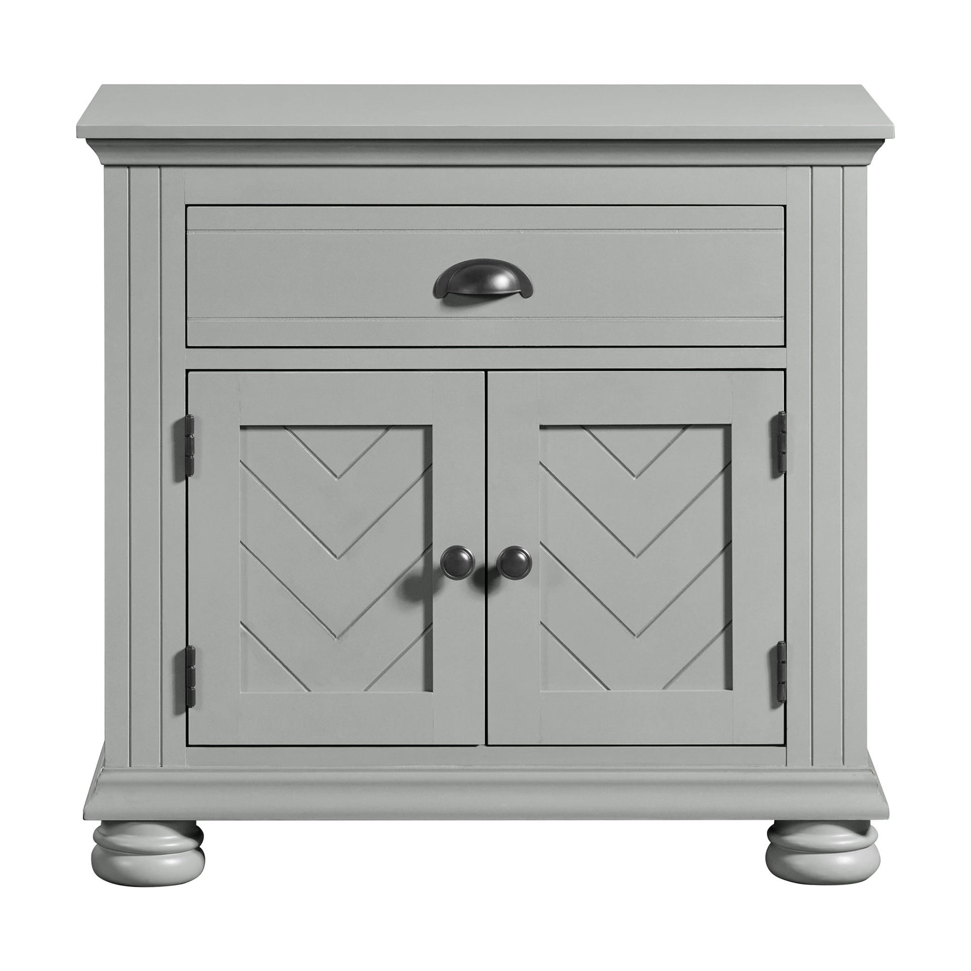 Introducing the Kona Nightstand, the perfect blend of style and functionality for your bedroom. This nightstand not only offers ample storage space with a drawer and cabinet, but also includes a USB port for added convenience. The chevron pattern detail on the cabinet door fronts adds a touch of elegance, while the knob and cup pull hardware give it a modern flair. The drawer is lined with felt to keep your belongings safe and secure, and the dust-proofing bottom layer ensures that this nightstand will last for years to come. With bun feet and Kenlin drawer guides for smooth operation, the Kona Nightstand is the ideal addition to any bedroom decor.