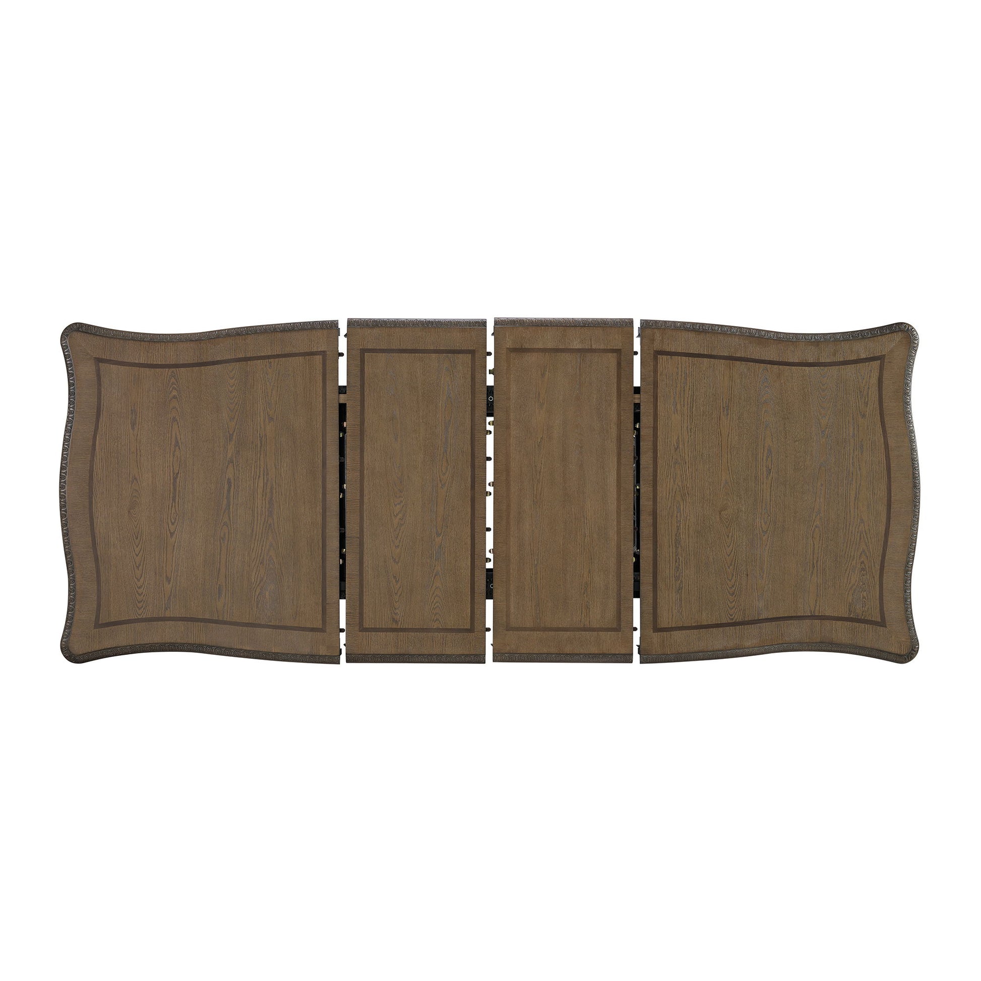 Experience versatile dining with the exquisite Madison Park Dining Set. Expandable from 72" to 108" with two 18" leaves, it accommodates intimate dinners and large gatherings alike. The rich finish exudes warmth and sophistication, complemented by ornate carvings that add timeless charm. Supported by a sturdy double pedestal base, it ensures stable and elegant support. Nailhead trim on the chair back adds refined elegance, while carved legs and arms showcase intricate beauty. Tufted upholstery offers a plush, inviting feel, combining comfort with classic style that never goes out of fashion. Ideal for creating memorable dining experiences in any home.