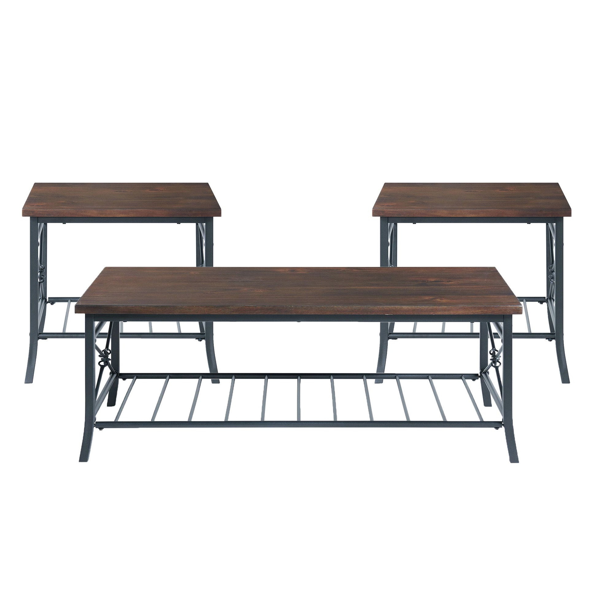 The Mica 3PC Occasional Set includes one coffee table and two end tables. With a warm finish and wood grain detailing, this set will enhance the overall look of your living room. Expertly crafted in acacia veneer, mdf, and metal for durability. All pieces feature metal lower shelving for storing your magazines, remotes, and décor. This set is pleasing to the eye but also practical for daily use. Ships in one box for easy handling!