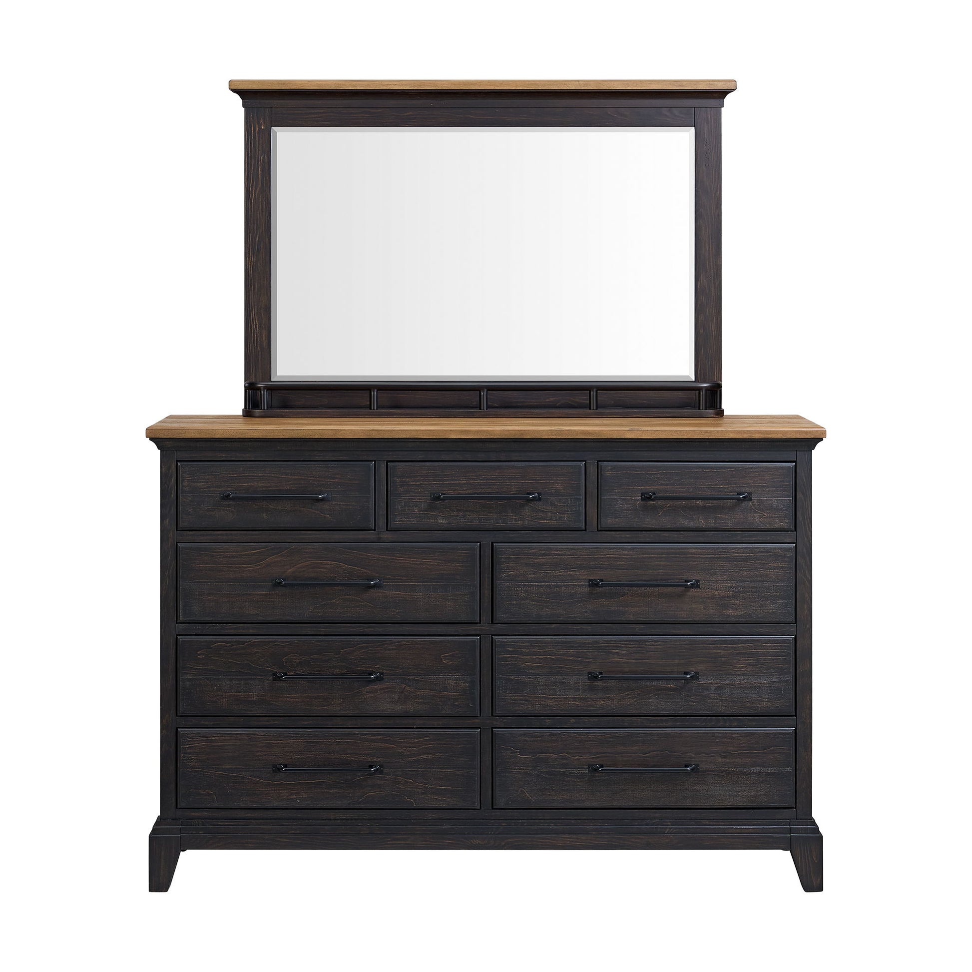 The Montrose Dresser in Espresso and Brown effortlessly blends timeless design elements with modern practicality. The aesthetic dual-toned finish adds visual interest, while the high-quality pine veneer enhances durability. Felt-lined top-row drawers provide extra protection for your delicate items, and a compartmentalized jewelry tray allows easy organization. To further this piece’s appeal, drawer boxes feature skillful dovetail construction and smooth ball-bearing glides. For a refined and practical addition to your bedroom, the Montrose Dresser delivers in both quality and style.