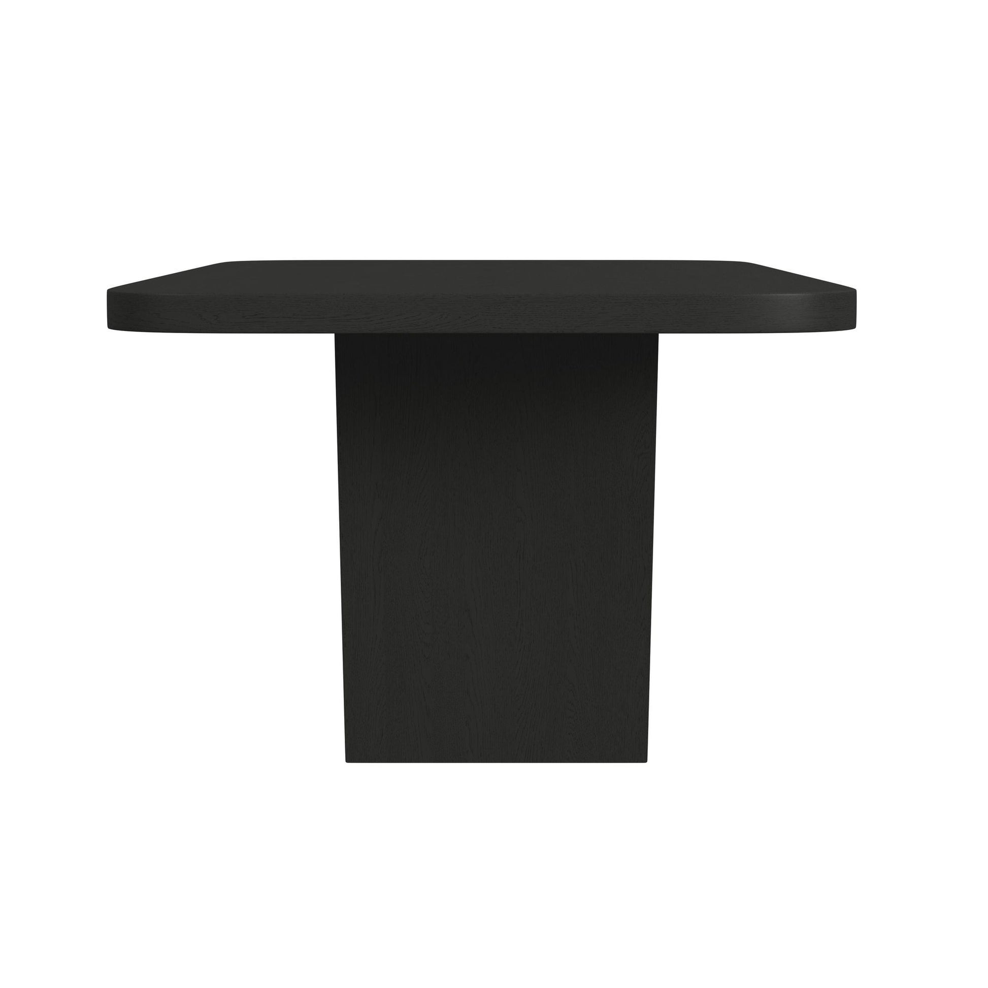Create an open and inviting dining space with the Ridgemont Rectangular Dining Table. This piece artfully blends geometric and organic shapes by showcasing a rectangular tabletop with gently rounded corners. The table's base easily becomes a focal point with its angled supports, while simultaneously creating an airy feeling with its open nature. The veneered, dark toned finish furthers this piece's appeal by simplifying maintenance. For a practical, versatile, and charming addition to the heart of your home, the Ridgemont Rectangular Dining Table satisfies on all fronts.