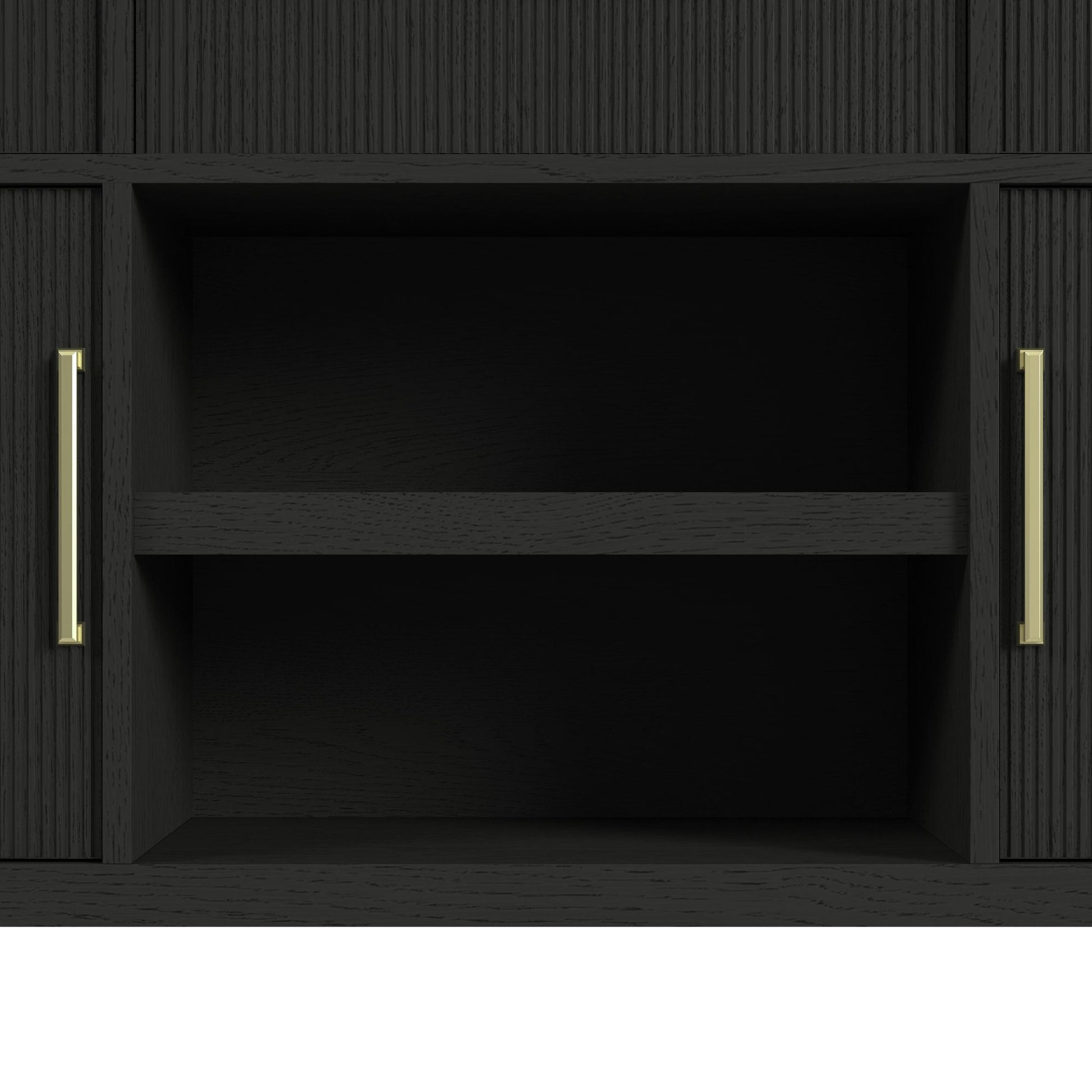 Introduce refined elegance to your dining space with the beautifully crafted Ridgemont Server. The sleek, black tone and gracefully rounded edges create an intriguing silhouette, and textured cabinet fronts add a touch of artful sincerity. Spacious drawers and shelving provide a perfectly organized place for your cherished tableware, allowing you to effortlessly blend practicality with style, while a felt-lined top drawer adds further protection for your most delicate pieces. Let the Ridgemont Server's timeless design and refined nature be the latest addition to your dining room.