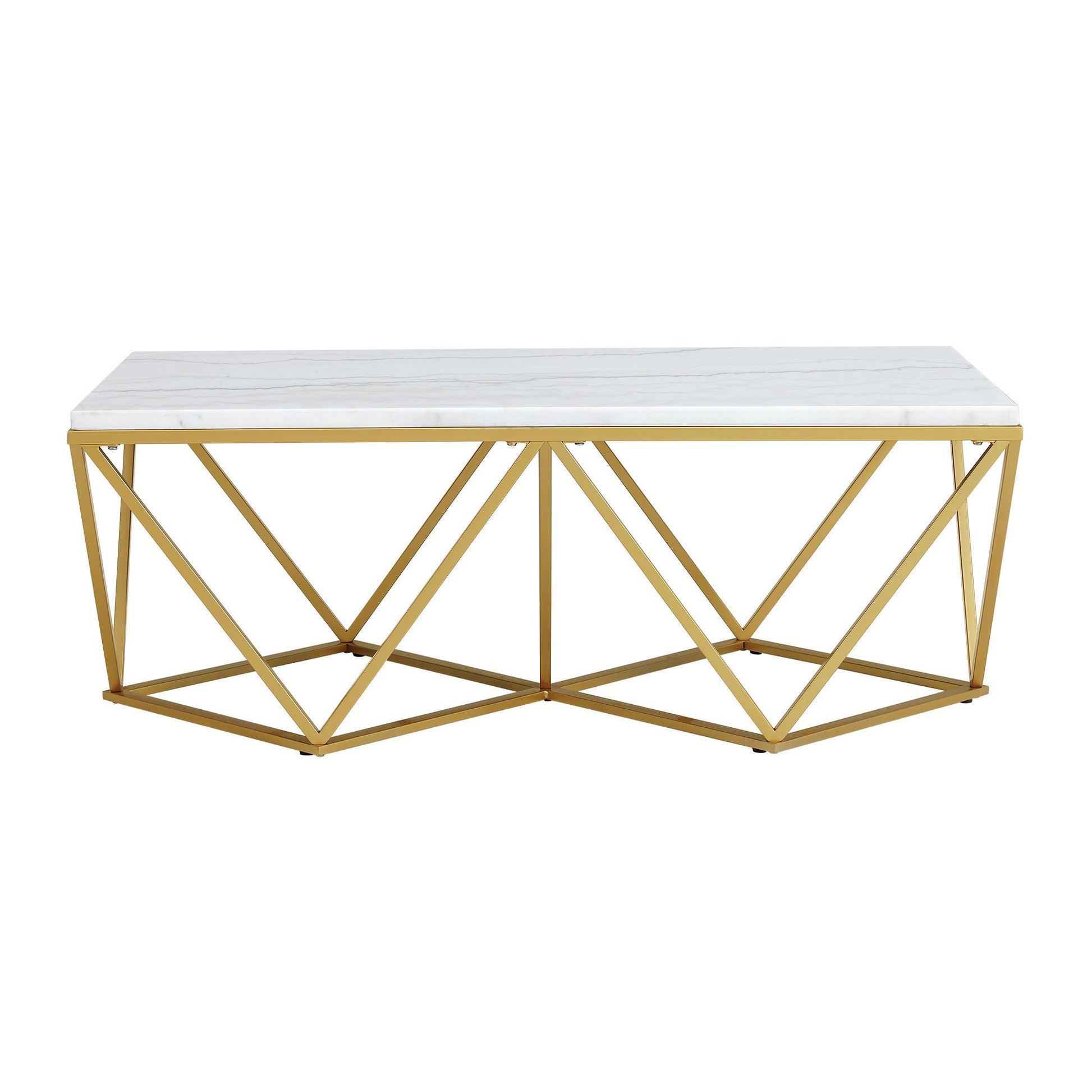 The Riko Occasional Table Set is the perfect addition to your home! This dynamic duo includes a coffee table and an end table. This set features crisp, white marble table tops that pair beautifully with the gold powder coated, metal legs. A cool, funky design element is the table bases, adding extra flair to this already stunning set. The sleek, clean lines will make this duo a staple in your home year after year, even when your style changes.