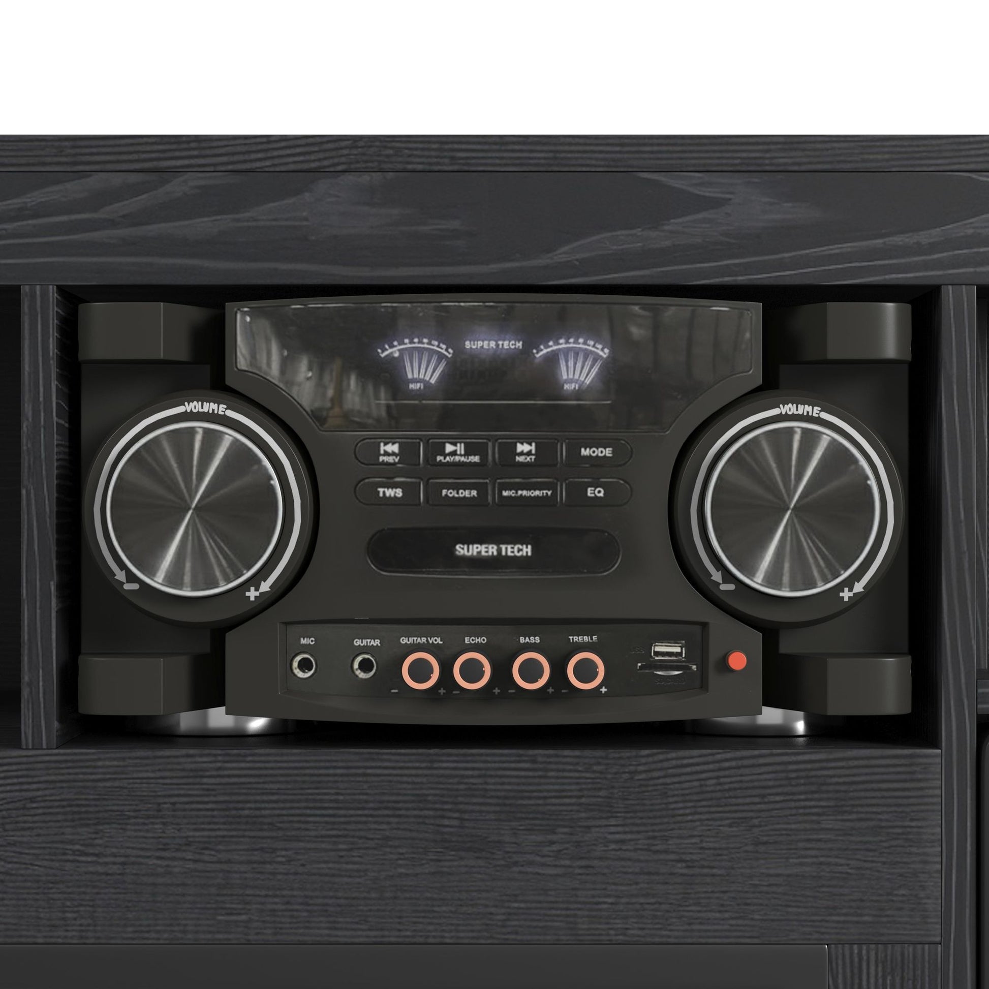 Ignite the party atmosphere with the St. Cloud Fireplace, a stunning all-in-one piece designed to bring warmth and entertainment to any space. Featuring a sleek black finish with natural undertones, this centerpiece combines modern style with cozy vibes. The 23” fireplace insert offers inviting warmth, while the built-in console with karaoke and an equipped sound system ensures endless fun. Set the mood with color-changing LED lights on the speakers, and enjoy extra convenience with additional cubby storage. The St. Cloud Fireplace is the ultimate fusion of function, flair, and unforgettable experiences.