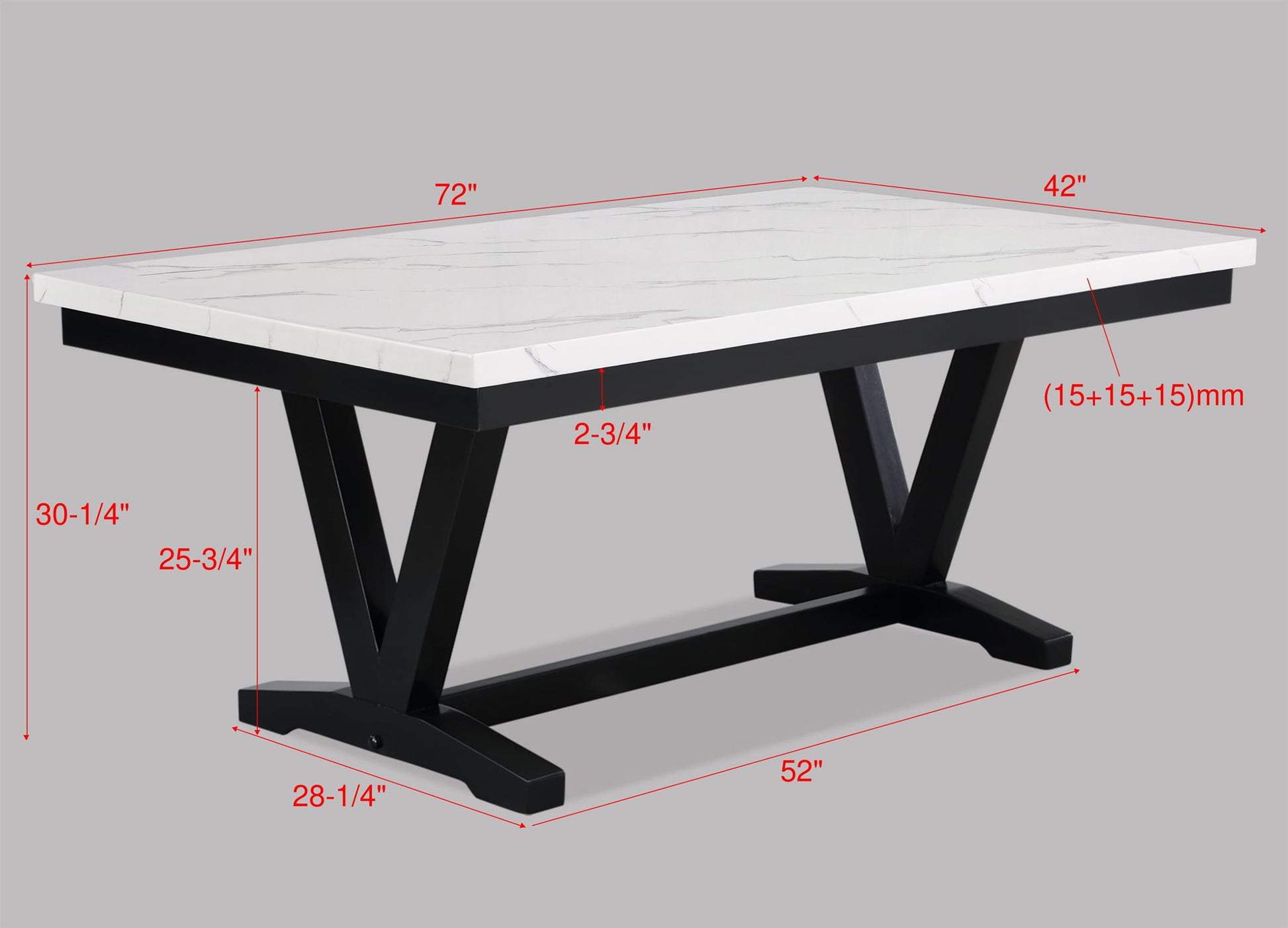 Introducing a harmonious blend of modern sophistication and classic elegance. This dining set showcases a refined faux marble tabletop supported by a distinctively designed trestle base, creating a striking contrast. Accompanied by sleek chairs, accented with nailhead trim and dressed in a chic leatherette upholstery, this ensemble is a testament to understated luxury. The additional bench seating option promotes communal dining and adds versatility.
