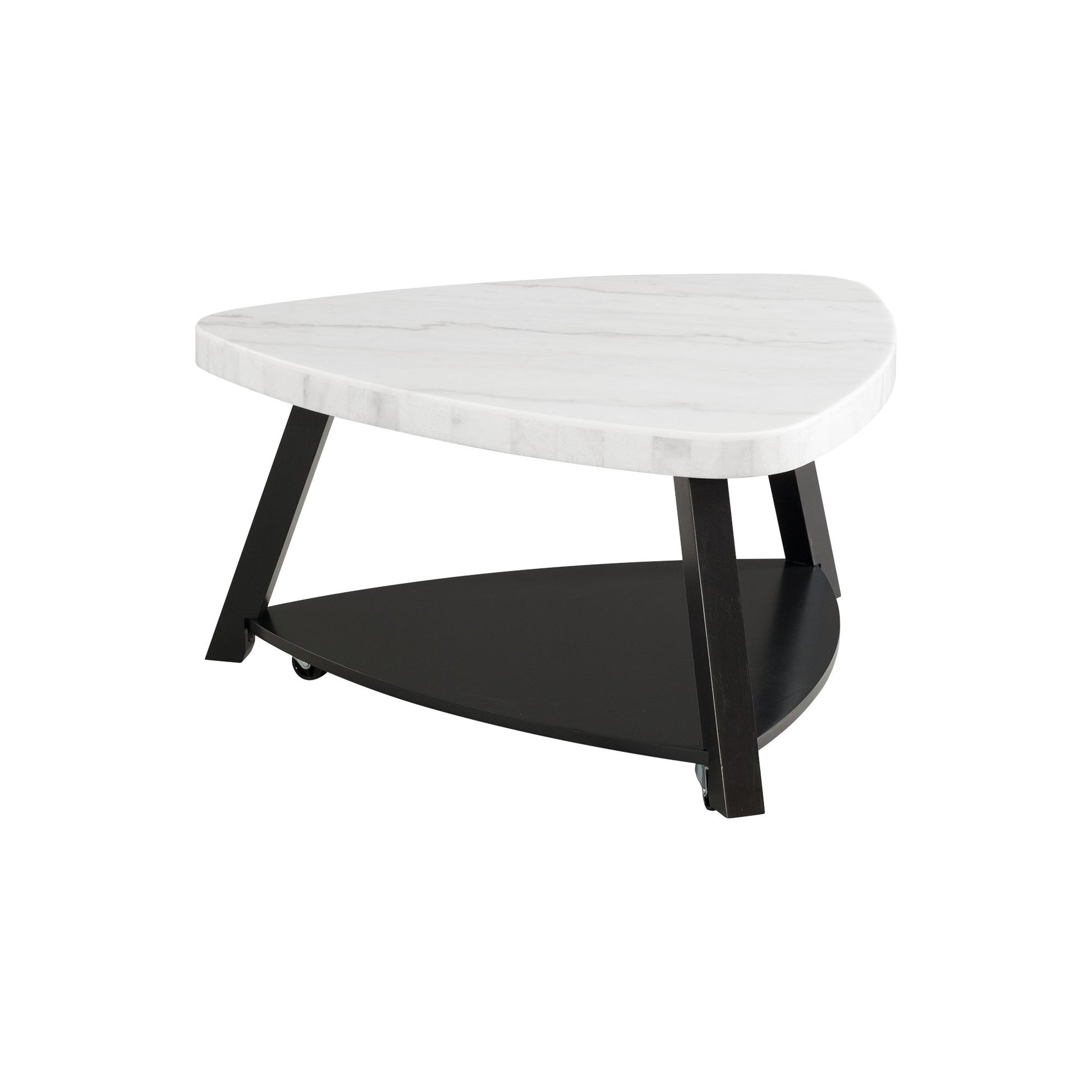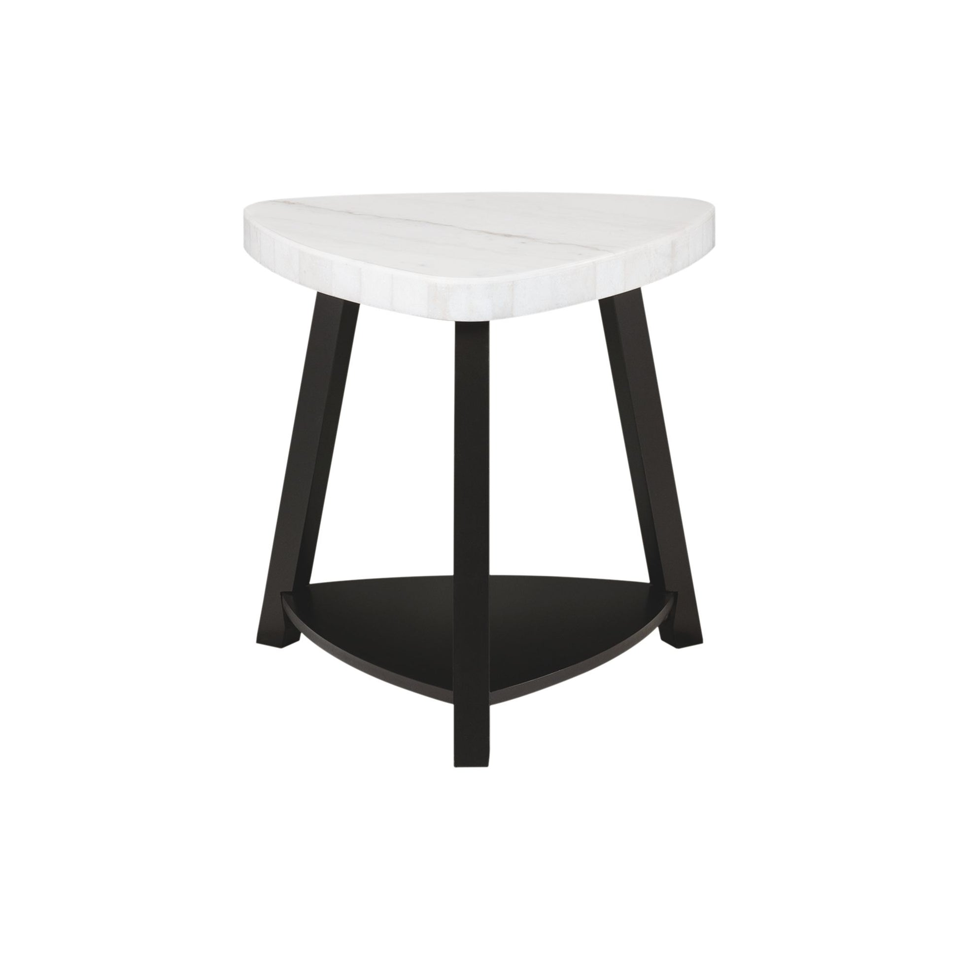 The Trinity Marble Top Table is begging to be added to your living room! This table features a guitar-pick shaped design, making it super easy to fit any space in your home. The marble top, contrasts perfectly with the black, wooden base. This table serves a dual purpose thanks to its bottom shelf; display your favorite decor. Add this accent table to your home today for a look that will never go out of style.