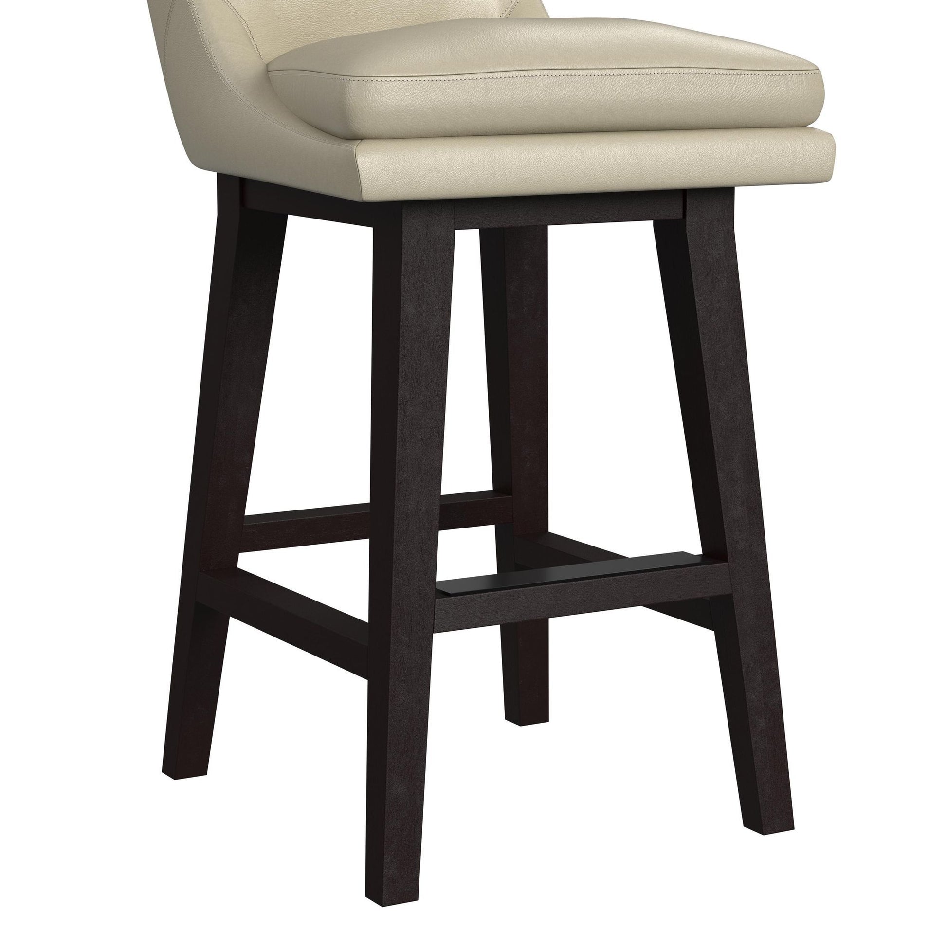 The Villanova Swivel Bar Stools make a statement in your home's dining space. Upholstered in quality faux-leather and padded with thick foam cushioning on the chair seats and backs, these stools are built for comfort. The armless profile and swivel motion are quintessential of pub style seating and promote a relaxed environment, while the chairs' bases constructed from both solid and engineered wood provide long-lasting stability. For a sleek and refined addition to your dining area, the Villanova Swivel Bar Stools satisfy in design and comfort.