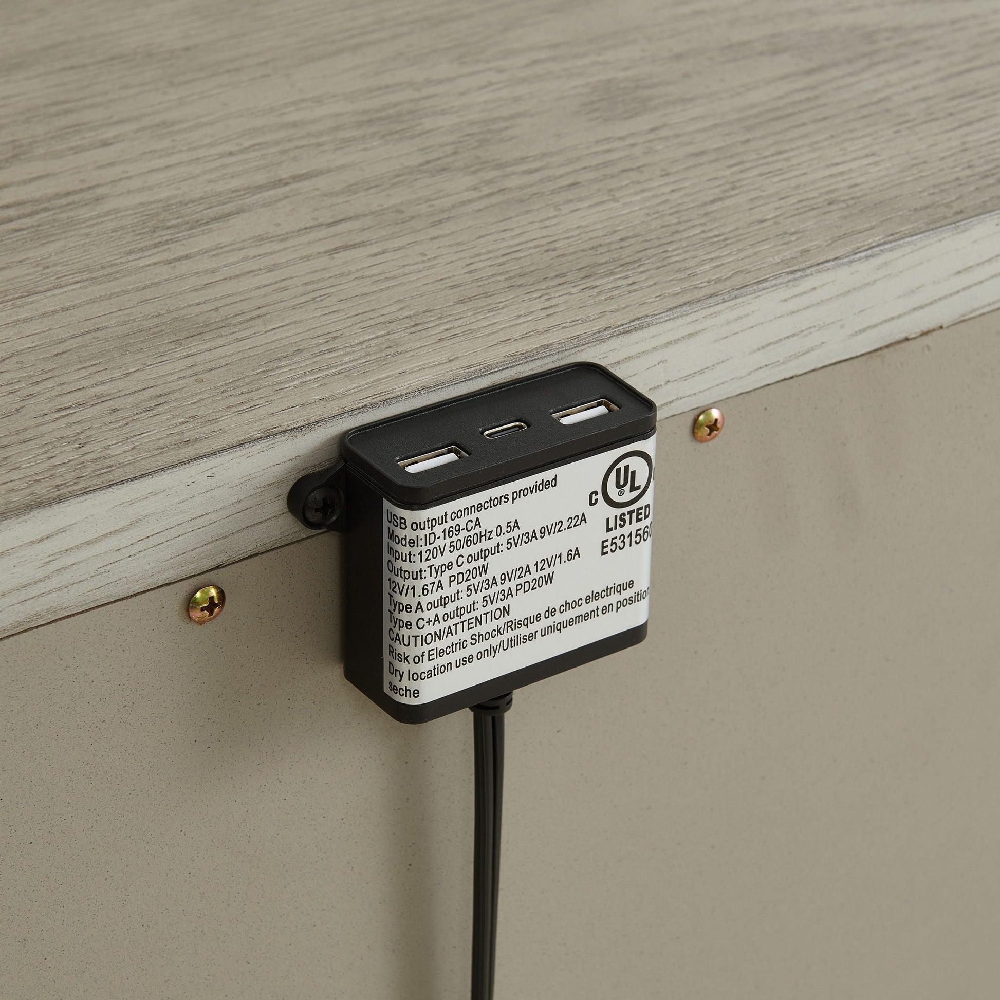 Add a touch of sophistication to your bedroom with the Whit-Ash 2-Drawer Nightstand. This stylish nightstand features a convenient USB port for charging your devices, as well as a grey felt lining in the top drawer to protect your delicate items. The antique bronze hardware adds a timeless touch, while the dust proofing bottom layer ensures your belongings stay clean and organized. With inset panels, beveled edges, and tapered bun feet, this nightstand combines functionality and style for a truly elegant addition to your bedroom decor.