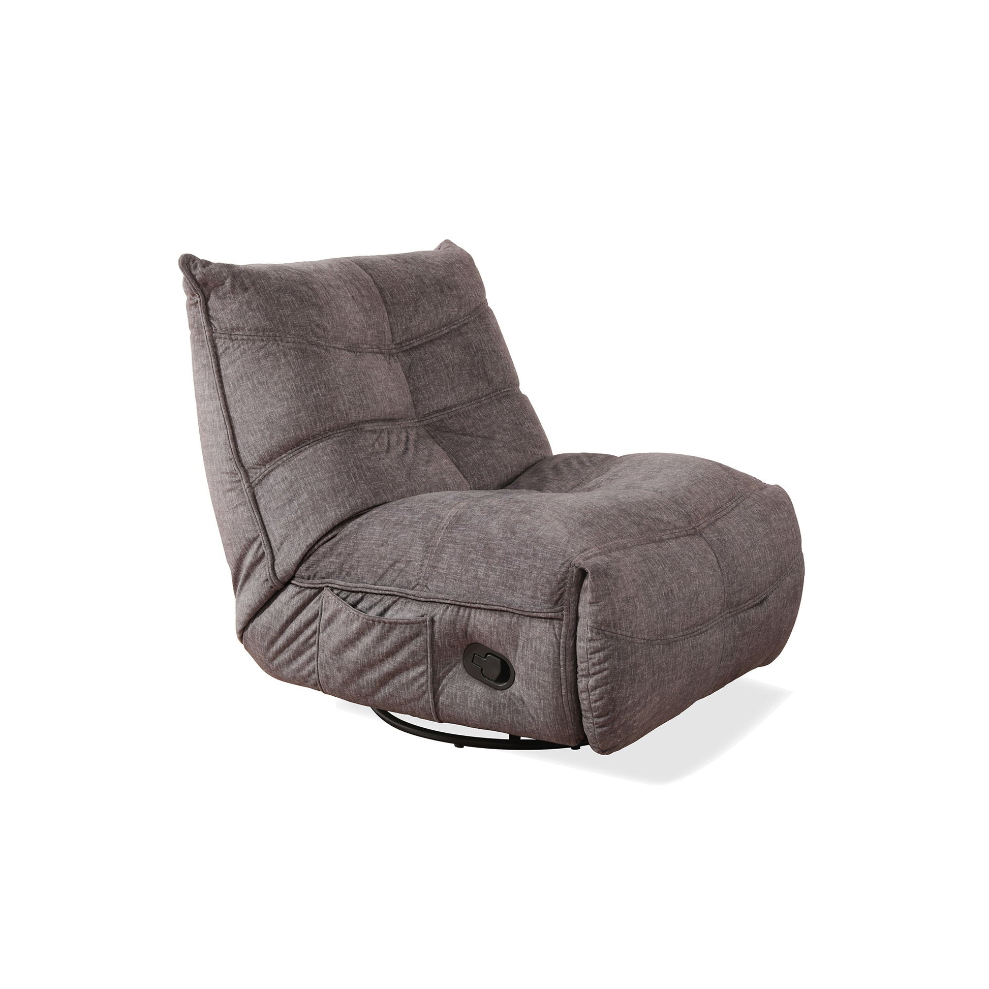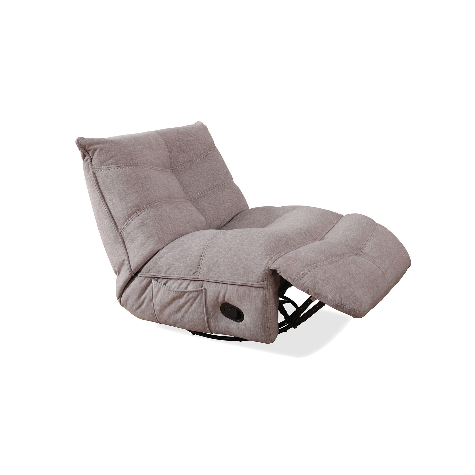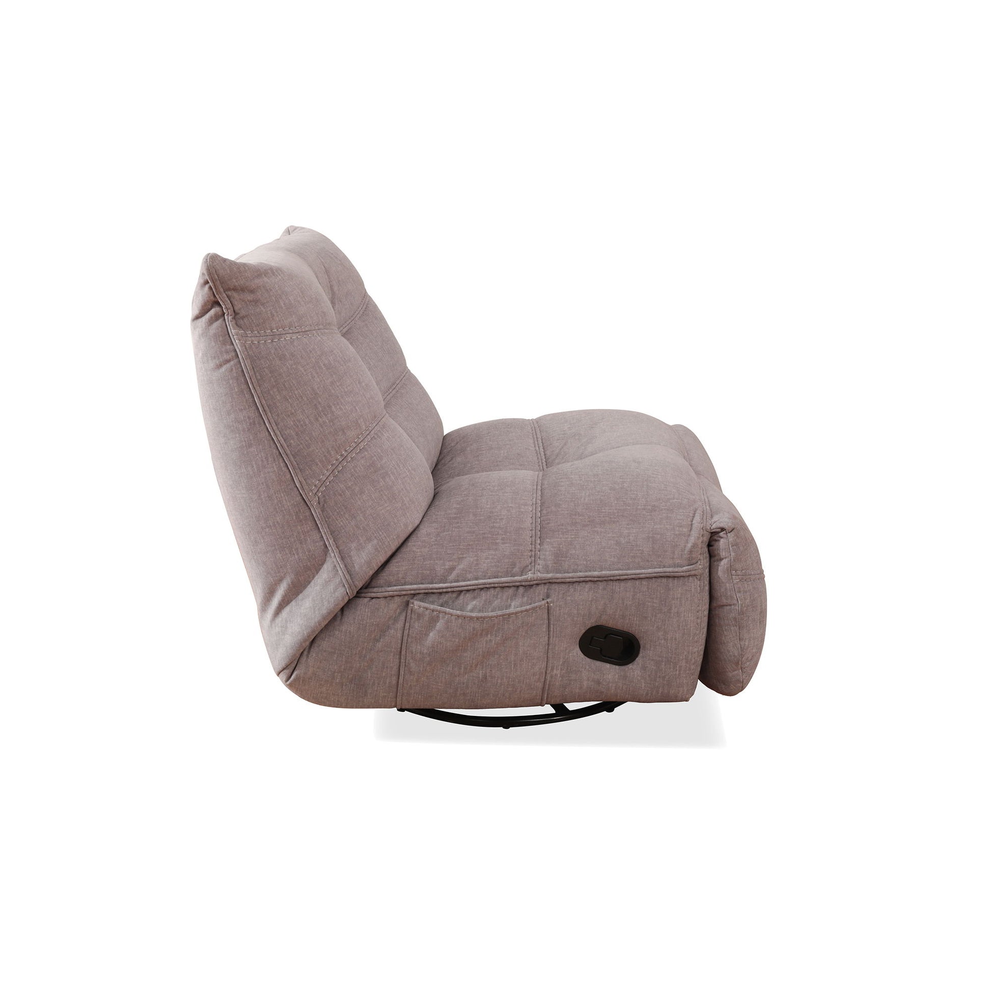 Introducing the Zara Swivel Recliner, the ultimate combination of comfort and functionality. With a remarkable 360 lbs mechanism capacity, this recliner is built to withstand daily use and provide long-lasting support. Designed with convenience in mind, this recliner comes with an armless design and a side storage pocket, allowing you to keep your essentials within arm's reach. It also features baseball stitching and the foam-filled cushion offers plush seating, while the comfortable deep seat provides optimal relaxation. Whether you're watching TV or gaming, the Zara Swivel Recliner is the perfect companion that ticks all the boxes for style and comfort.